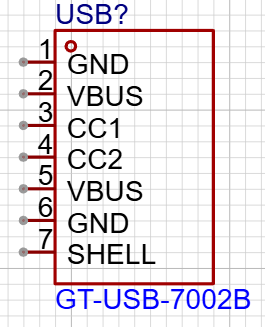 这是一个最简单的供电用的TYPE-C插座,完全没有引入数据引脚,从引脚名差不多就能判断各个引脚的作用。